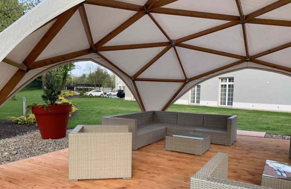 Specjalizujemy się również w tworzeniu zadaszeń ogrodowych dla kawiarni, restauracji i innych przestrzeni rekreacyjnych. Nasze zadaszenia zapewniają ochronę przed warunkami atmosferycznymi i tworzą przytulną i stylową atmosferę w Twojej przestrzeni nie tylko glampingowej.